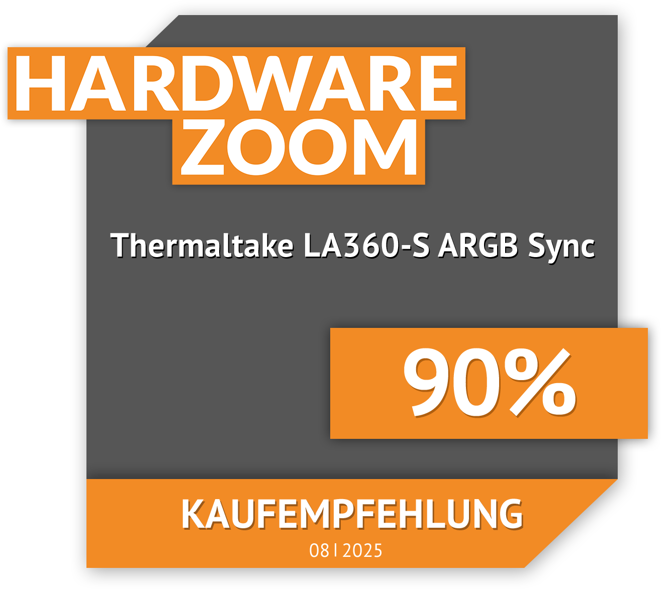 “Mit der LA360-S ARGB Sync liefert Hersteller Thermaltake eine wertige AiO-Wasserkühlung für Performance-Anwender ab. Abseits der ordentlichen Kühlleistung wissen Verarbeitungsqualität, Optik (anpassbare RGB-Beleuchtung + LCD-Display) und die einfache Montage (Lüfter vormontiert, wenig Kabel) zu gefallen. Auch die übersichtliche Software und angenehme Lautstärke sprechen für unser Testmuster. Last but not least: Der Preis von knapp unter 90 Euro ist sehr fair ausgefallen. Bemängeln müssen wir jedoch die kurze Garantiezeit von nur 12 Monaten. Angesichts der zahlreichen „Pro-Punkte“ können wir bedenkenlos eine Kaufempfehlung für den Wasserkühler aussprechen.