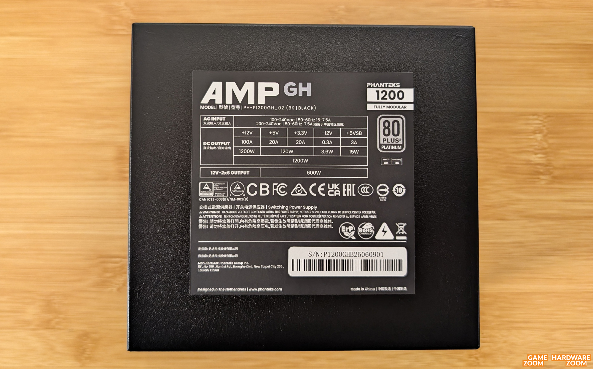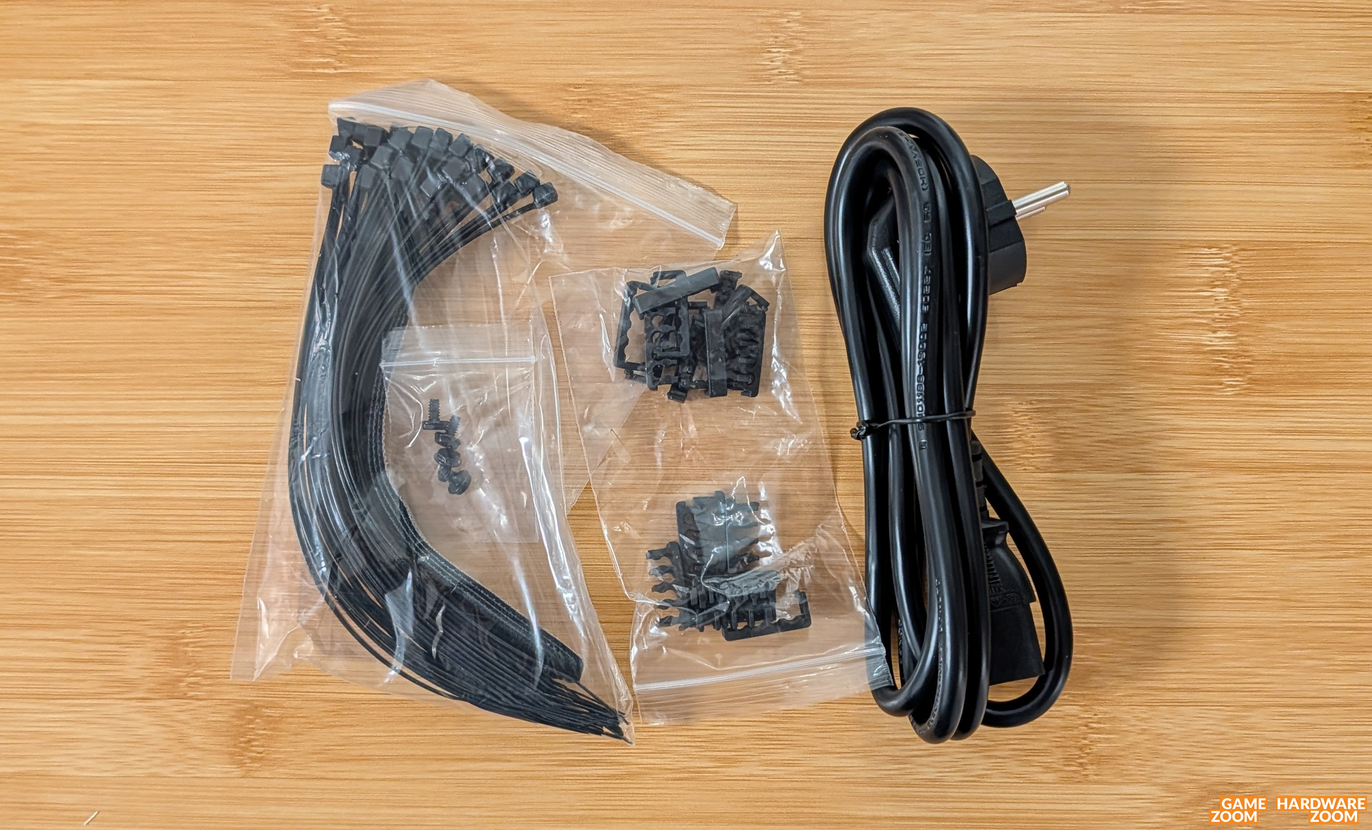 Der Lieferumfang besteht aus: Phanteks AMP GH V2 1200W Netzteil, Kunststoffkabelbinder, Kabelkämmen, Montageschrauben, Kaltstromkabel und einer ausführlichen Bedienungsanleitung.